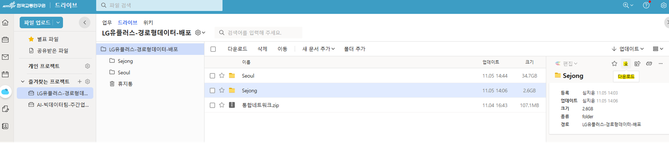 5) 신청자: 드라이브 내 파일 다운로드 가능